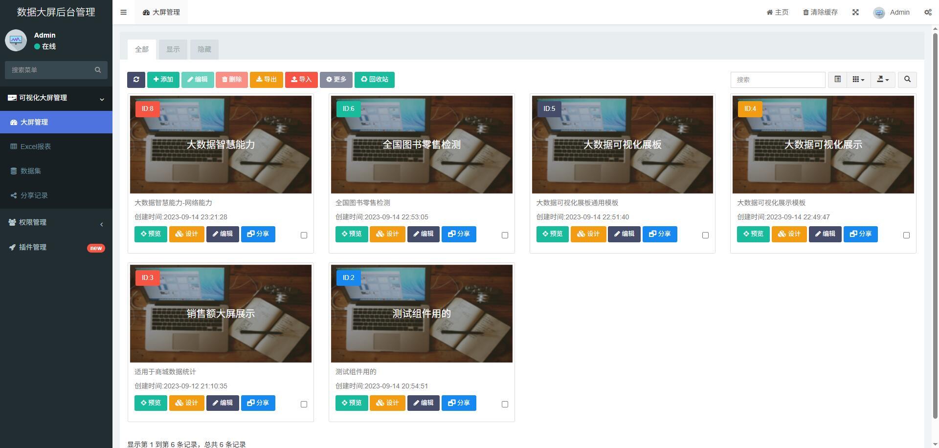 源码说明:ThinkPHP开发的数据大屏源码可视化义拖拽快速制作数据大屏/科技大屏/DIY拖拽制作, 内置30+组件、获取实时数据、使用简单易上手,轻松实现图形数据统计等。