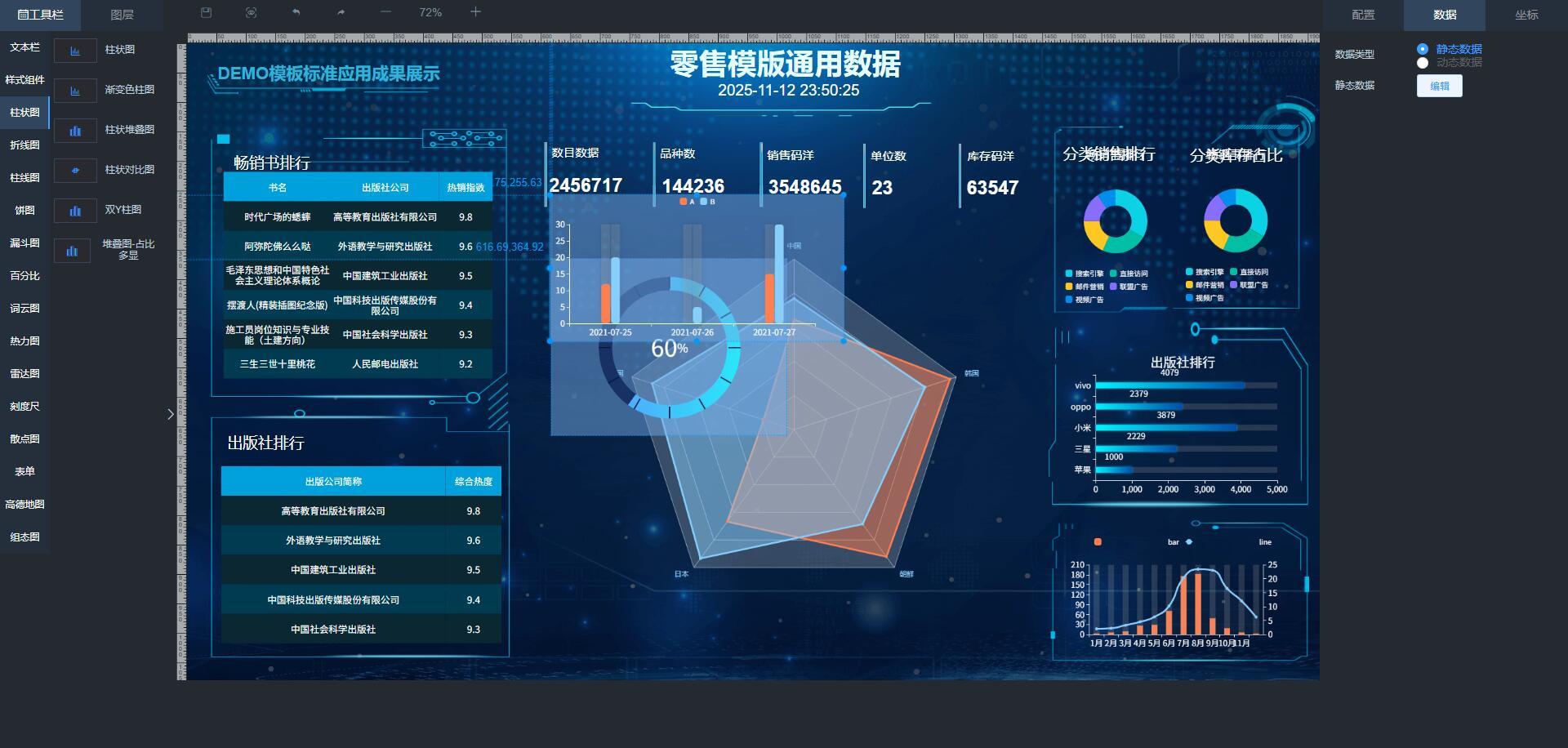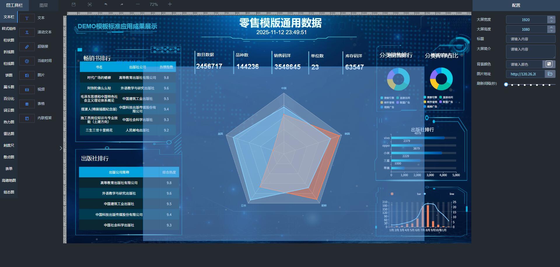ThinkPHP开发的数据大屏源码可视化义拖拽快速制作数据大屏/科技大屏/DIY拖拽制作