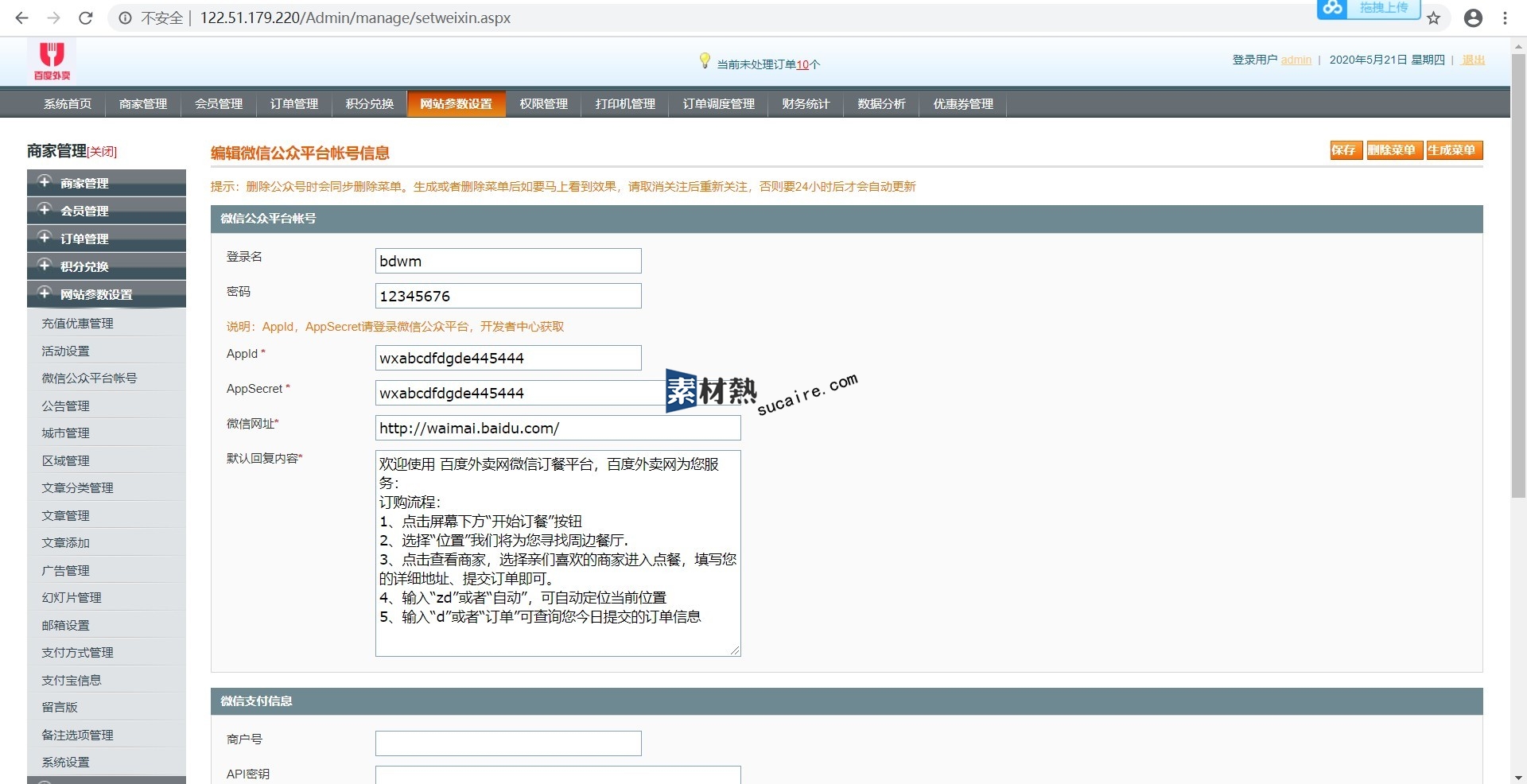 源码说明:2020ASP.NET仿百度外卖平台源码/WAP微信点餐系统/支持多商户/在线打印/C#支持二次开发,一款多商户的点餐外卖平台系统,全开源支持二次开发,功能是相当的完善,有需要的可以下载学习研究!!!