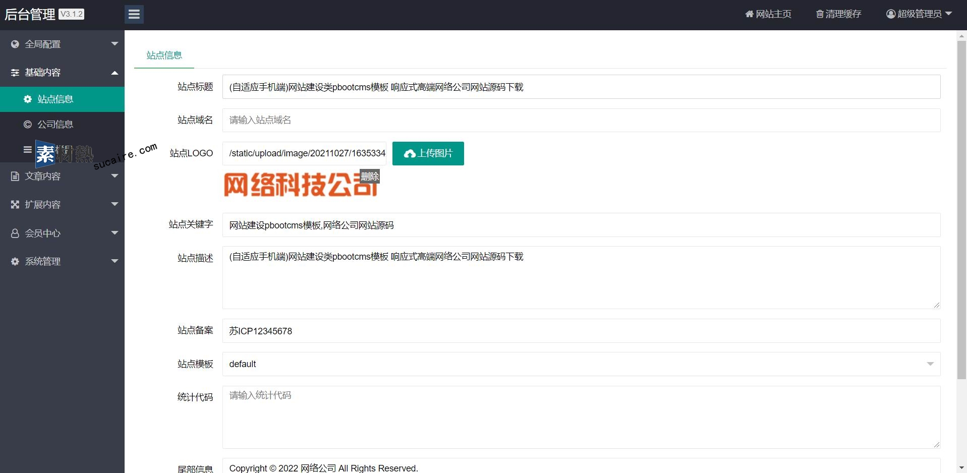 5:后台直接修改联系方式、传真、邮箱、地址等,修改更加方便。