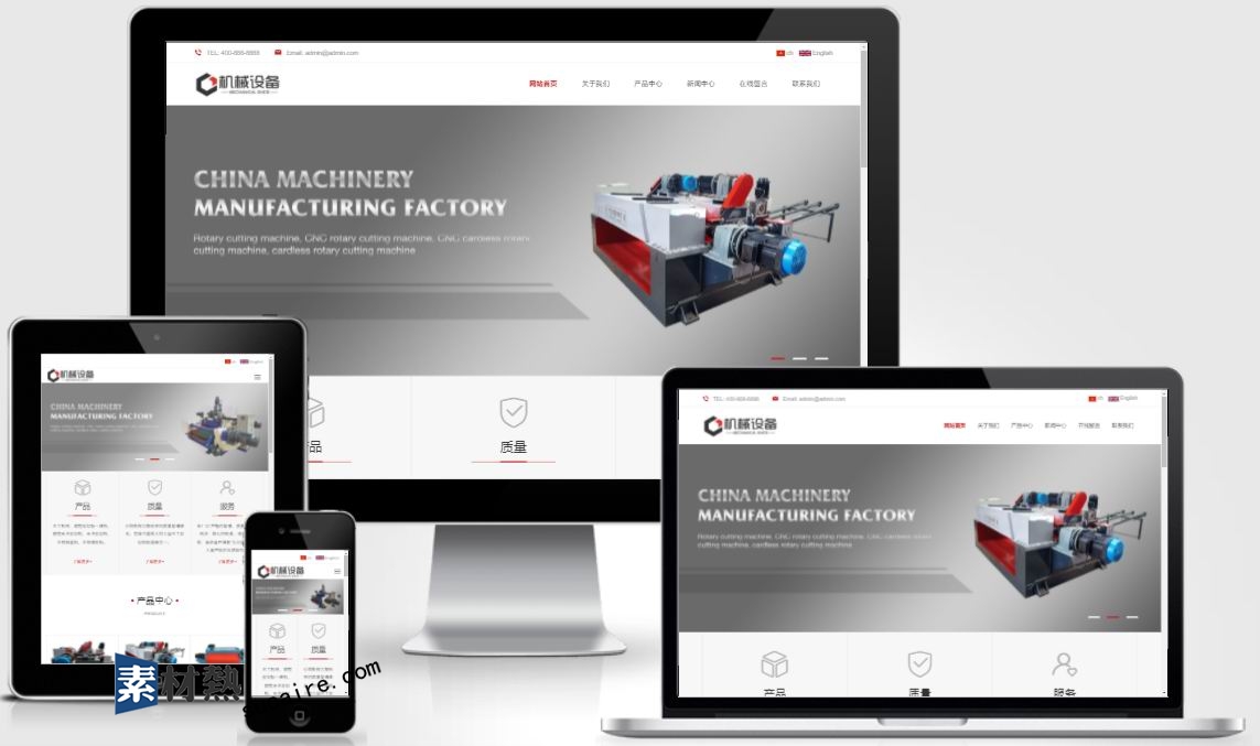 (自适应手机端)中英文双语机械设备网站pbootcms模板 大气html5通用机械网站源码