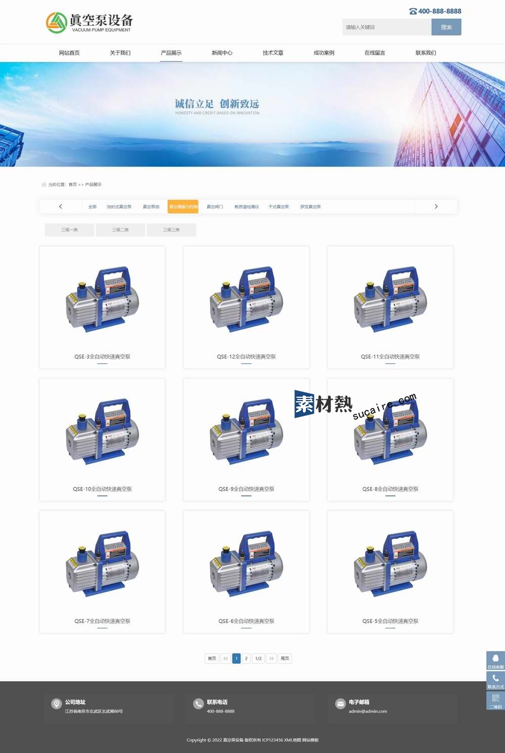 (自适应手机端)响应式真空泵水泵设备企业网站模板 自动真空泵机械设备网站源码