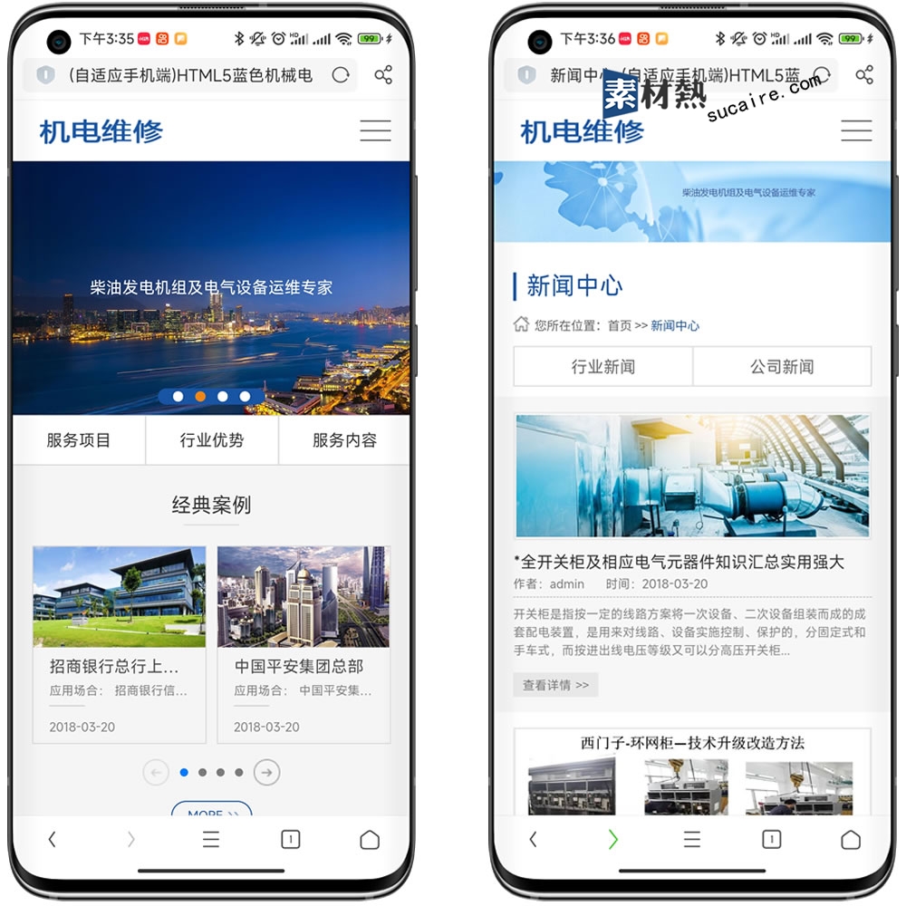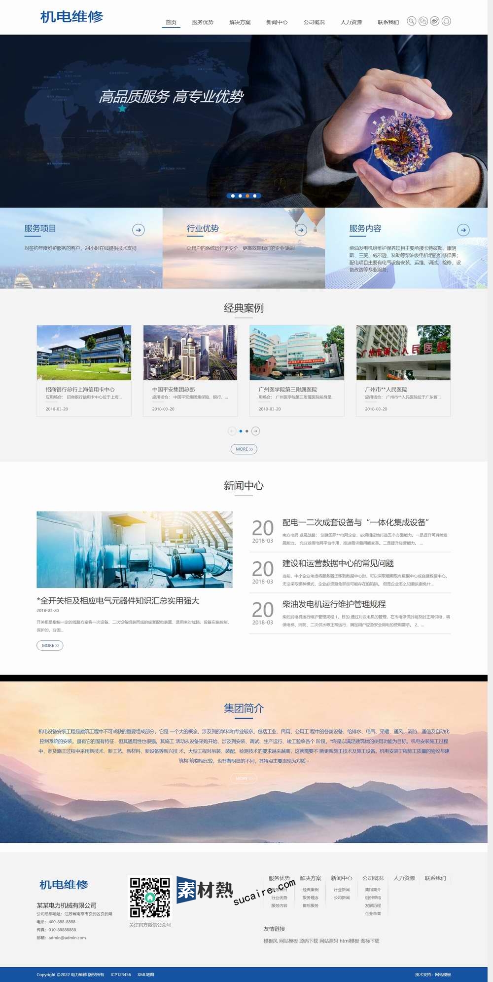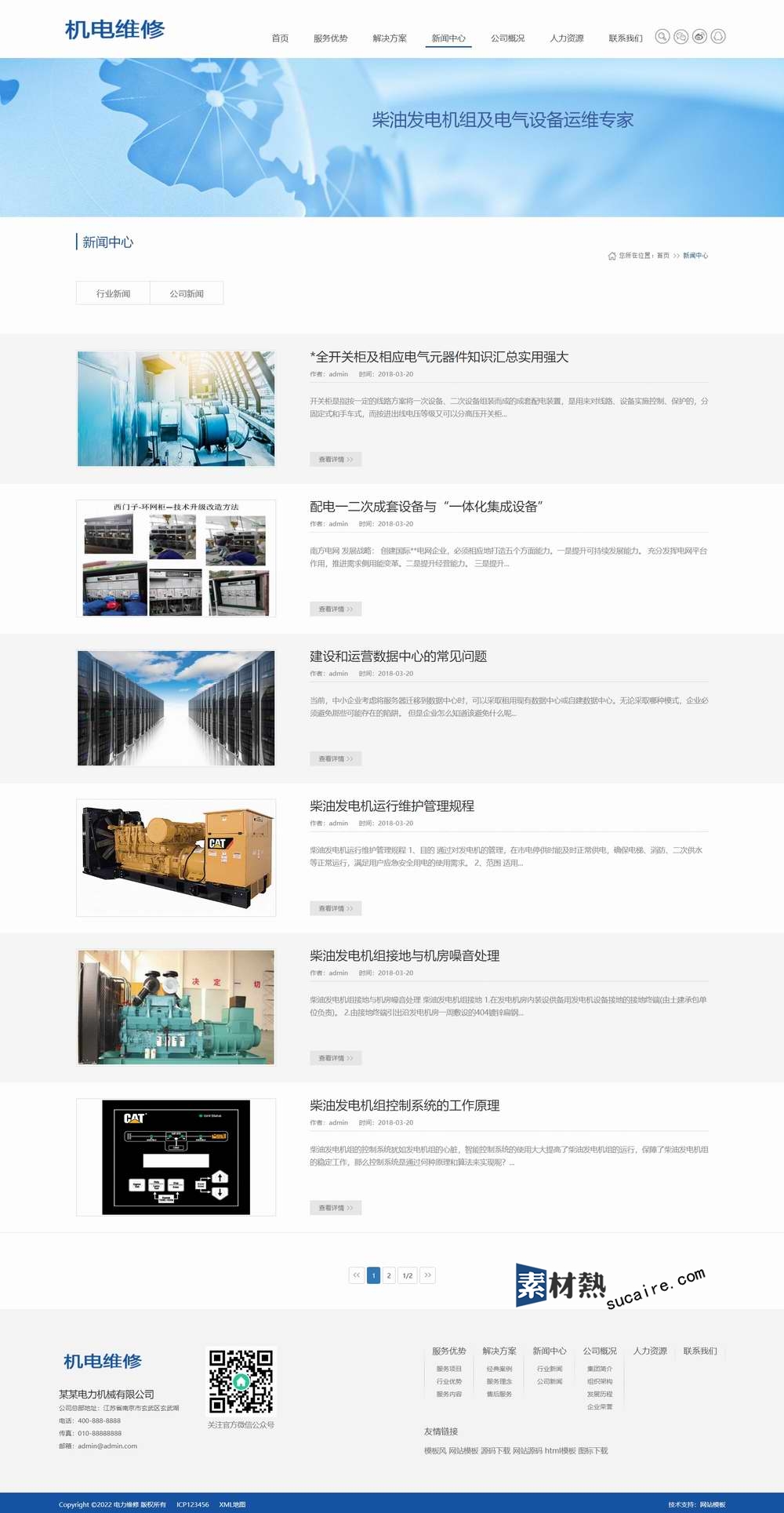 PbootCMS内核开发的网站模板,该模板适用于电力设备网站、发电机维修网站等企业,当然其他行业也可以做,只需要把文字图片换成其他行业的即可;