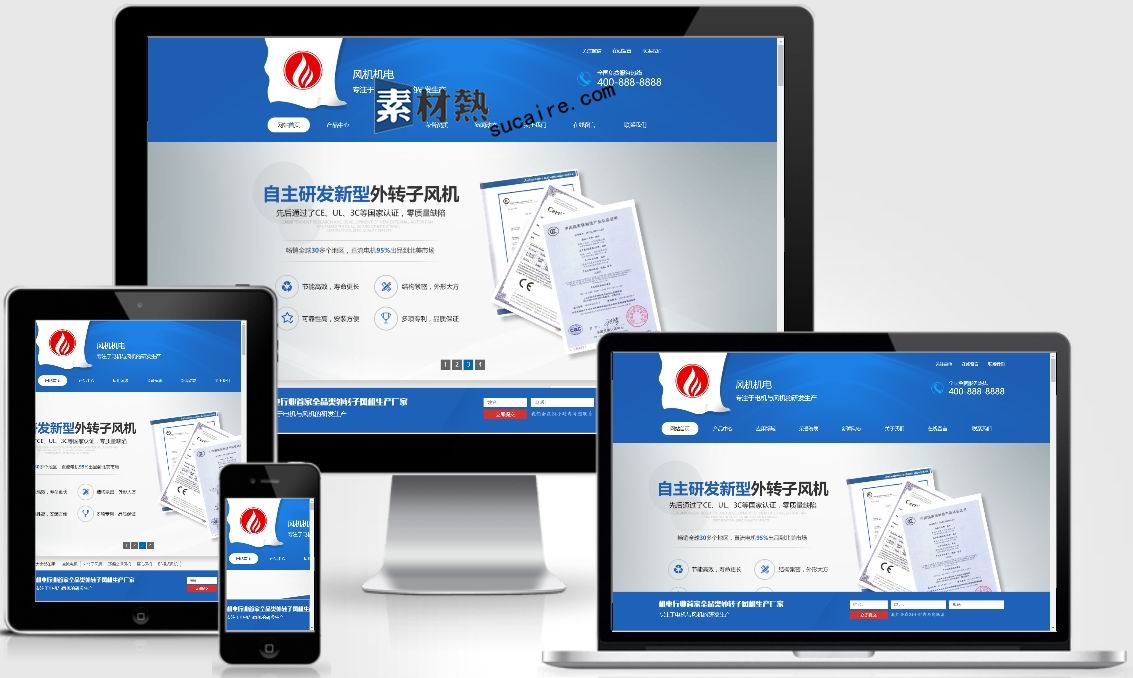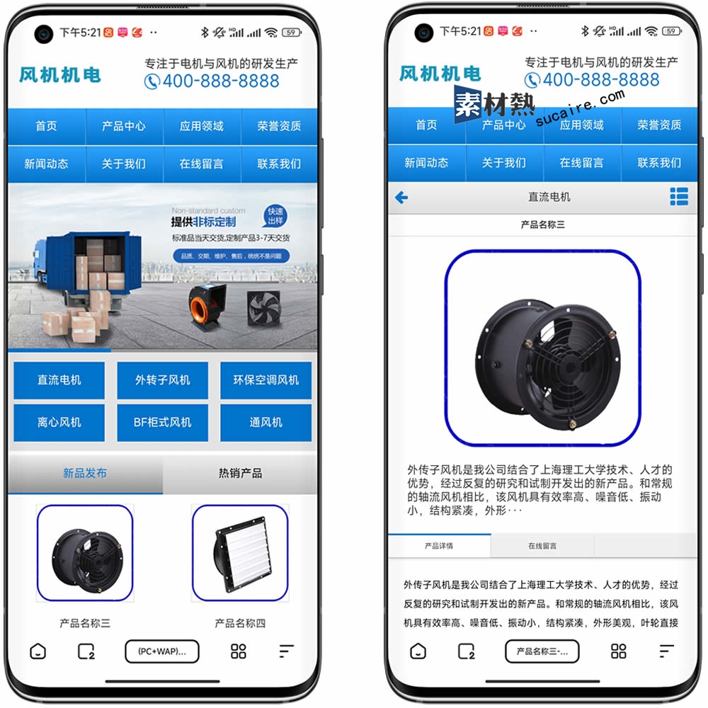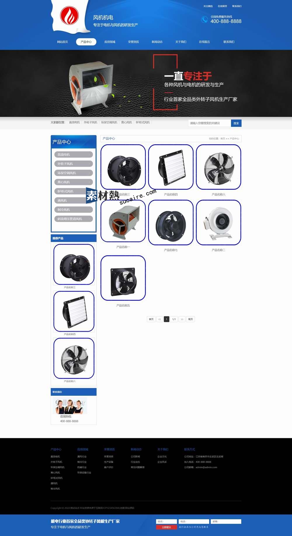 (PC+WAP)蓝色营销型五金机电类网站pbootcms模板 电机风机机械设备网站源码