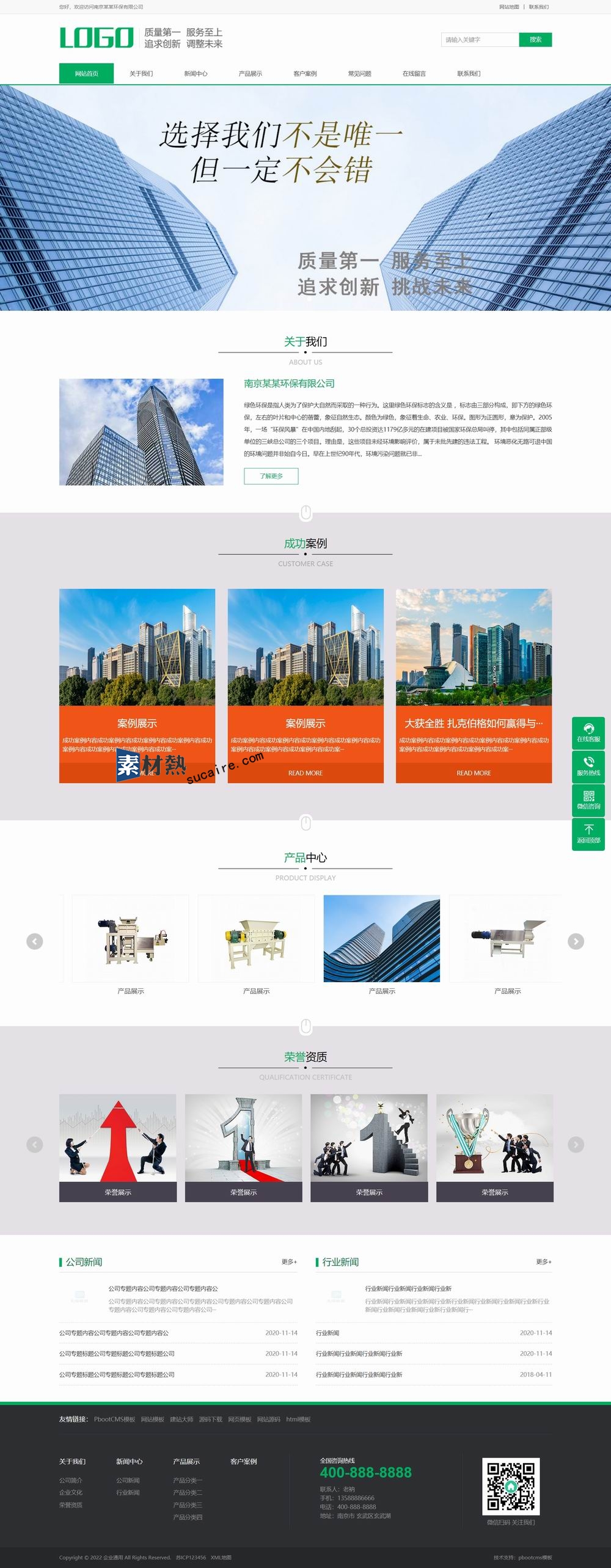 PbootCMS内核开发的网站模板,该模板适用于通用企业网站、环保企业网站等企业,当然其他行业也可以做,只需要把文字图片换成其他行业的即可;
