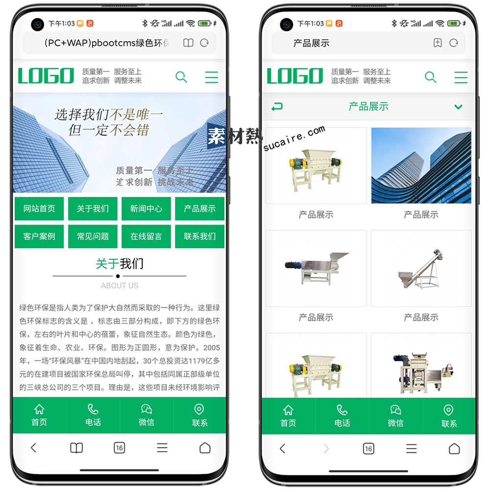 (PC+WAP)pbootcms绿色环保通用企业网站模板 建筑通用行业网站源码