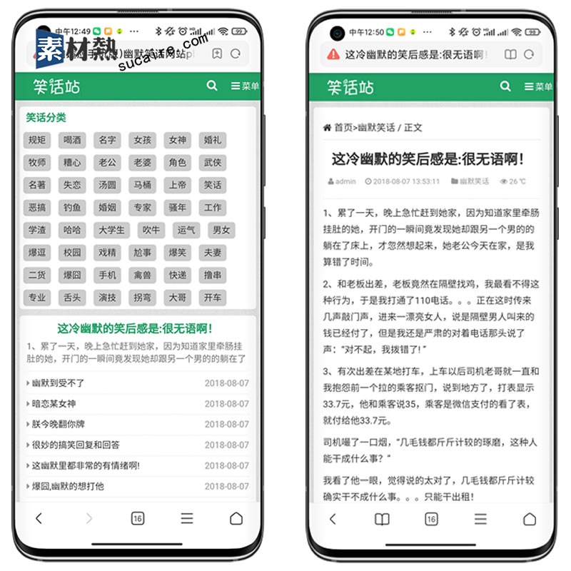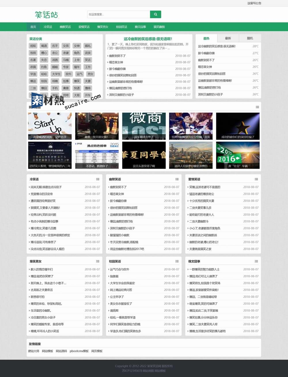 (自适应手机版)幽默笑话网站pbootcms模板 搞笑趣图类网站源码下载