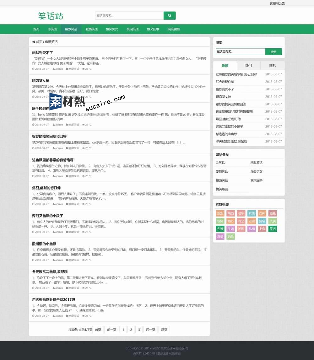 PbootCMS内核开发的网站模板,该模板适用于笑话网站、搞笑趣图网站等企业,当然其他行业也可以做,只需要把文字图片换成其他行业的即可;