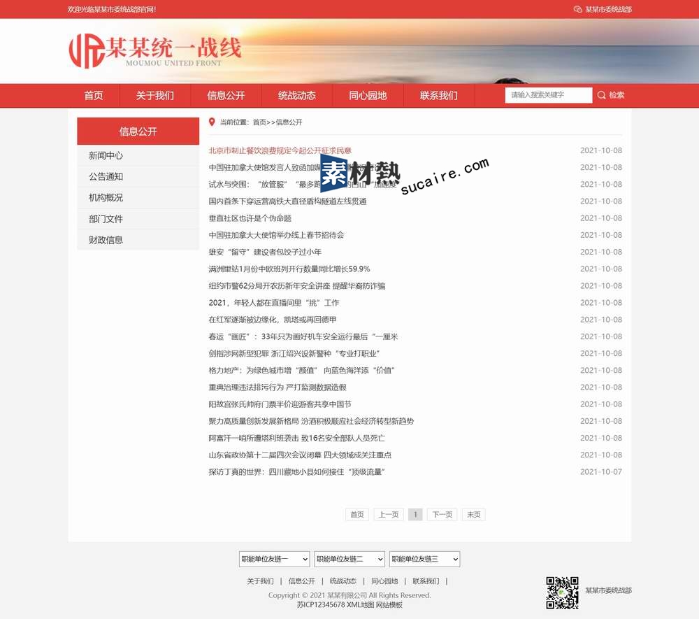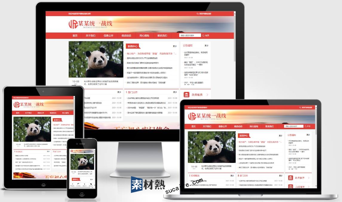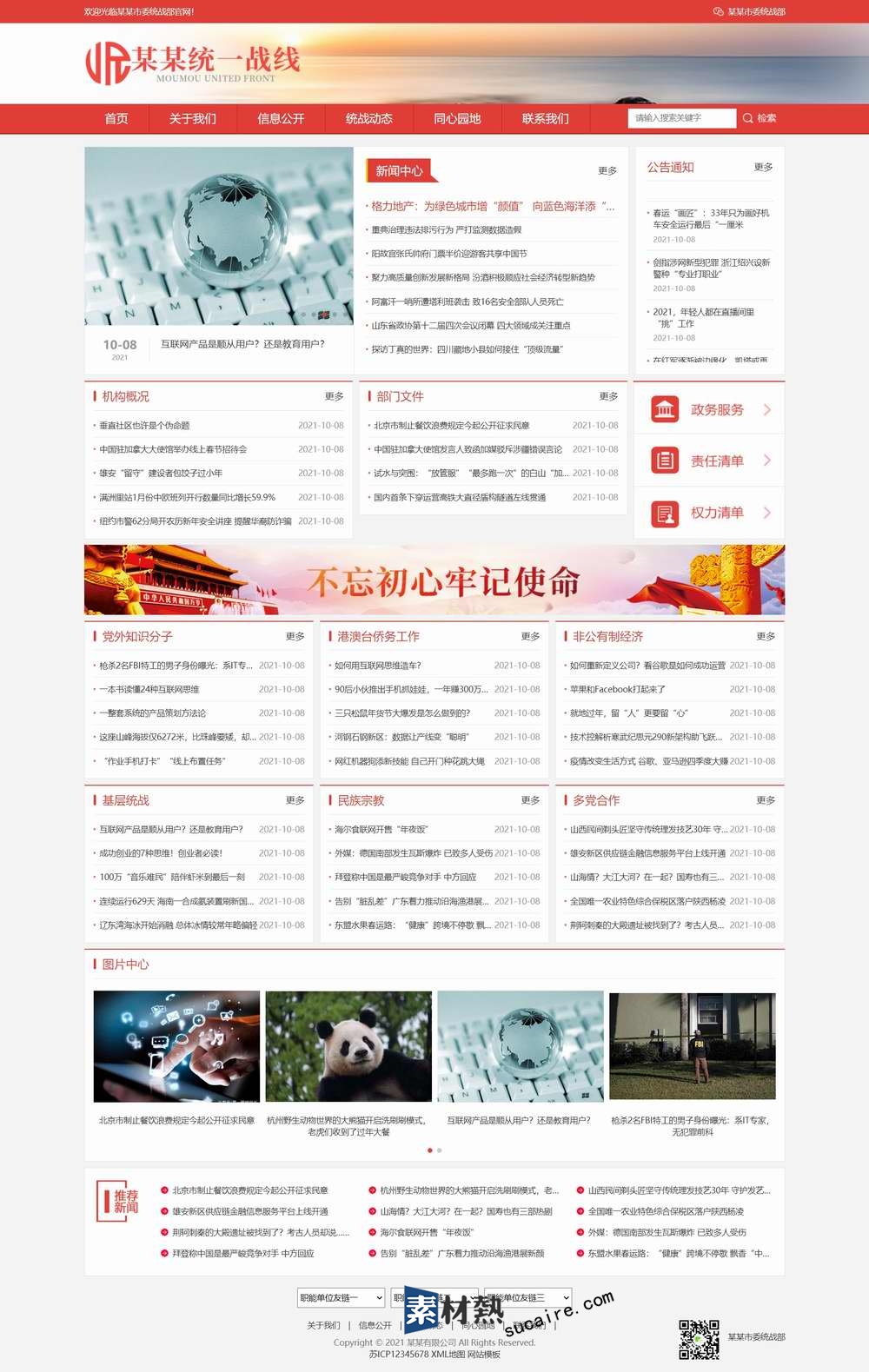 (自适应手机版)响应式统一战线政府单位机构类网站模板 红色政府部门机构网站源码