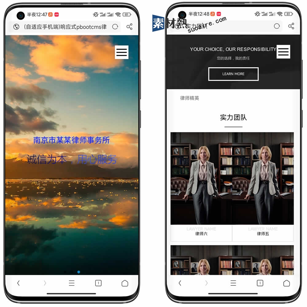 PbootCMS内核开发的网站模板,该模板适用于律师事务所网站、律师法律网站等企业,当然其他行业也可以做,只需要把文字图片换成其他行业的即可;
