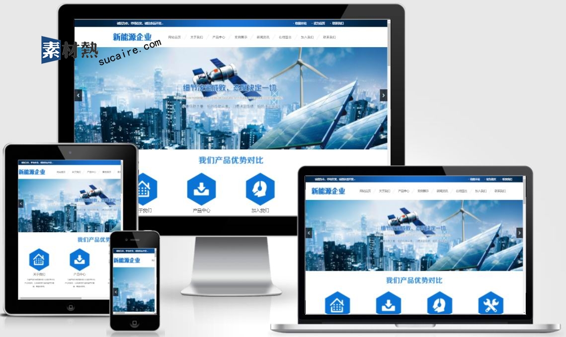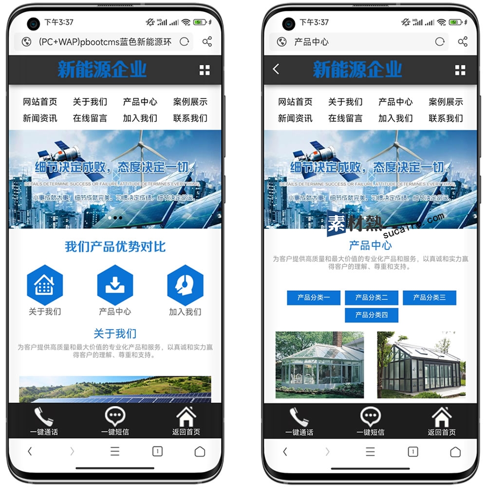 (PC+WAP)pbootcms蓝色新能源环保网站模板 太阳能光伏系统网站源码