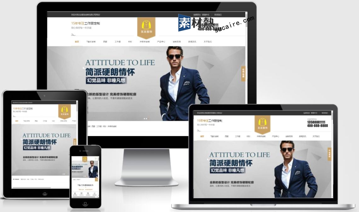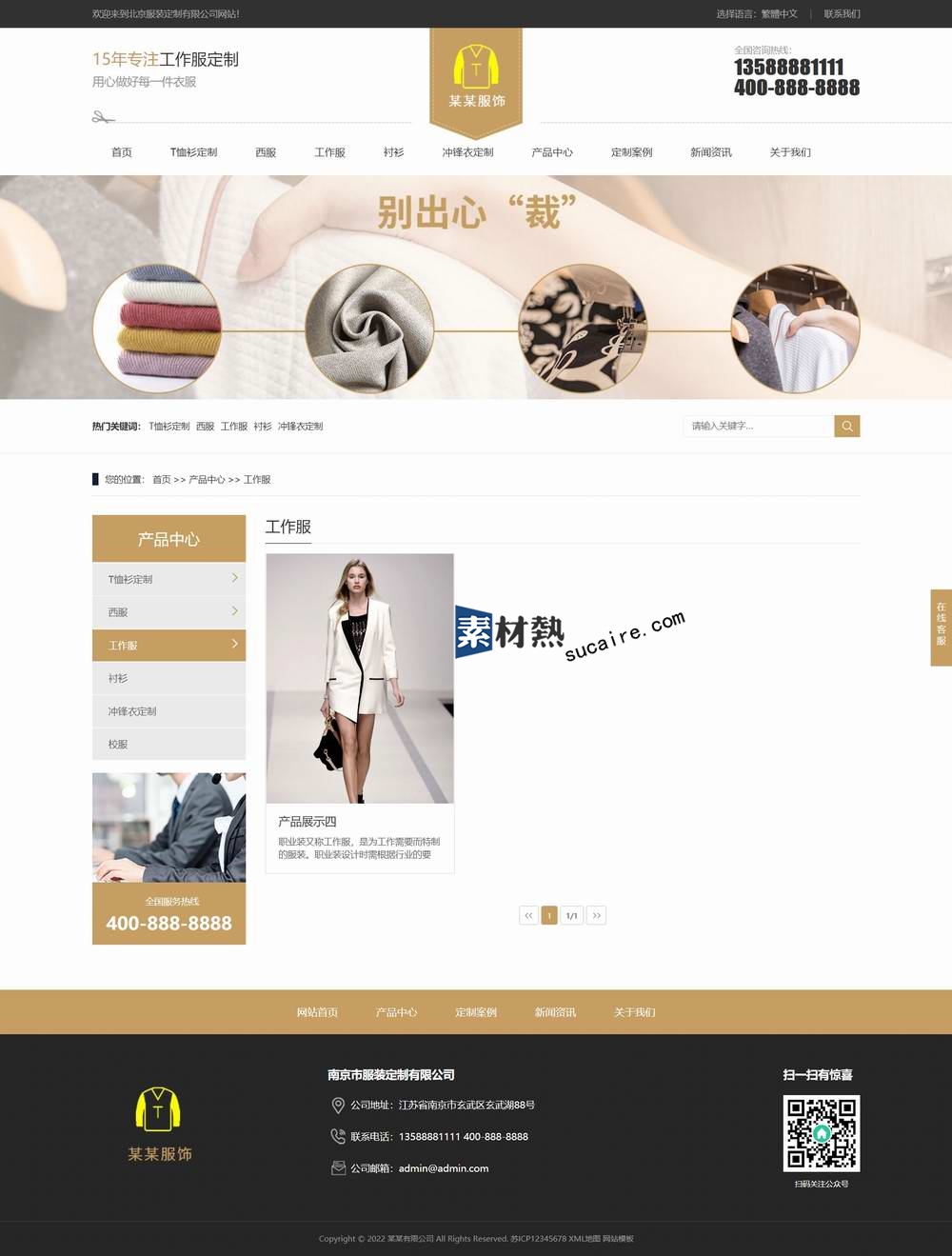 (自适应手机端)简繁响应式服装服饰pbootcms网站模板 西装工装校服定制网站源码