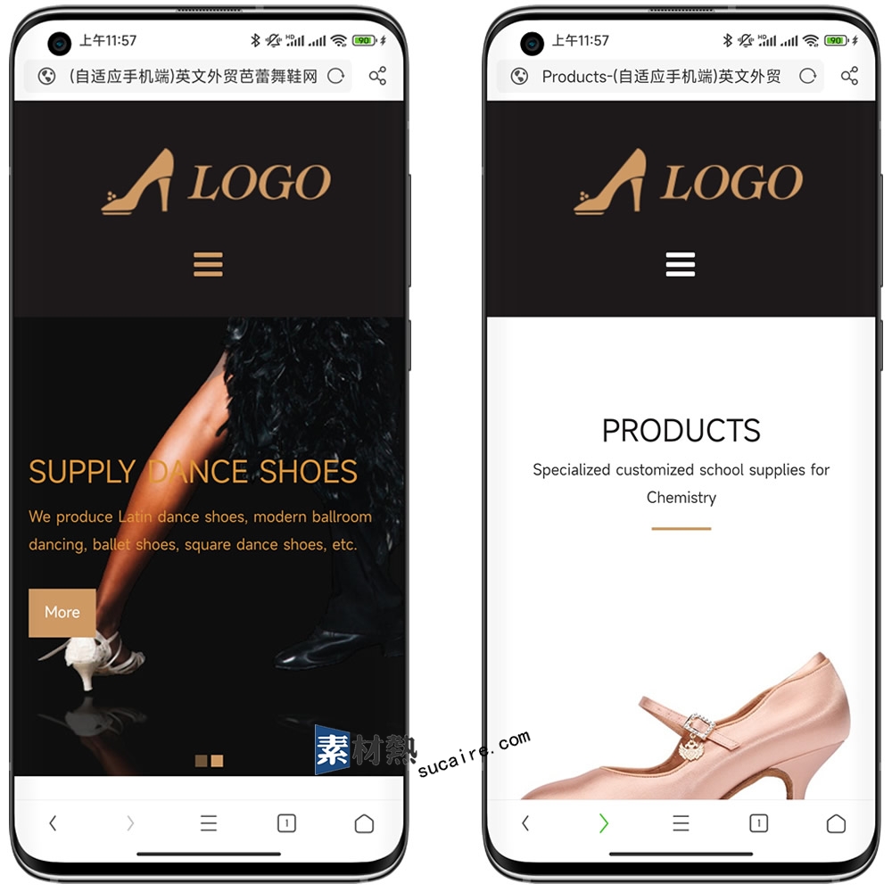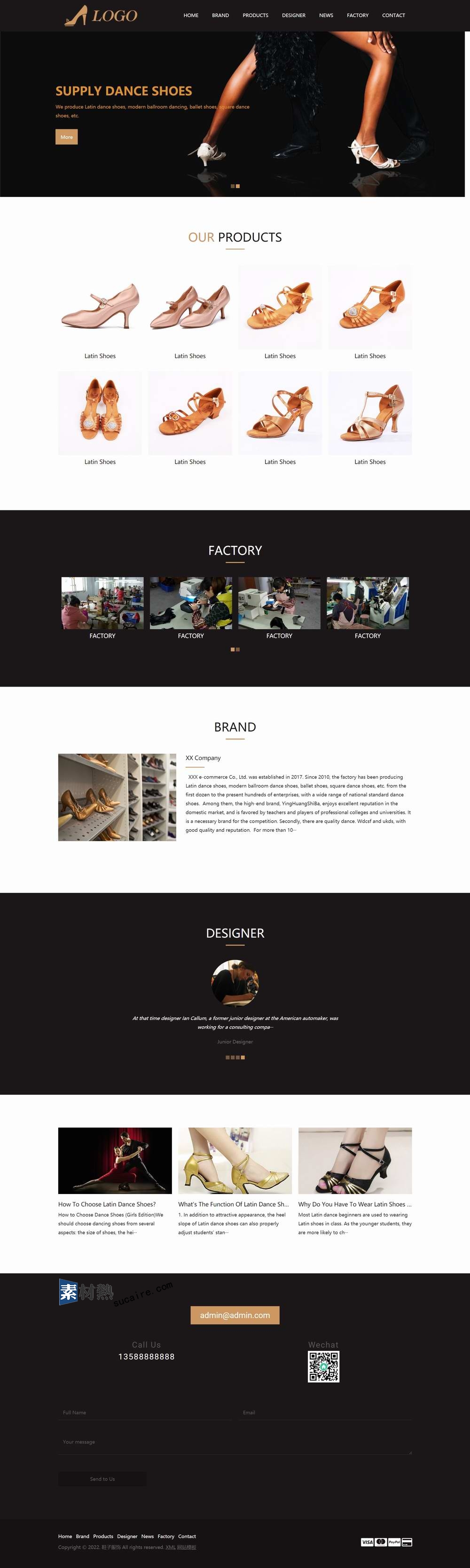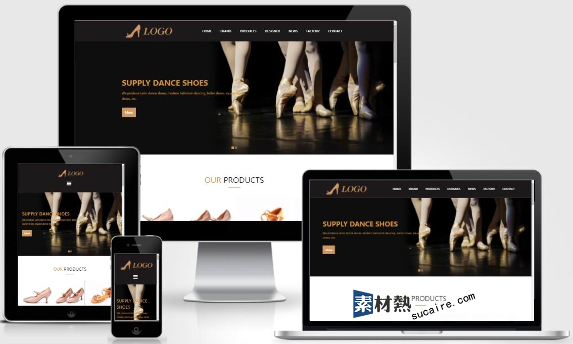 (自适应手机端)英文外贸芭蕾舞鞋网站pbootcms模板 拉丁舞鞋鞋类网站源码