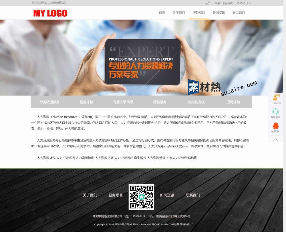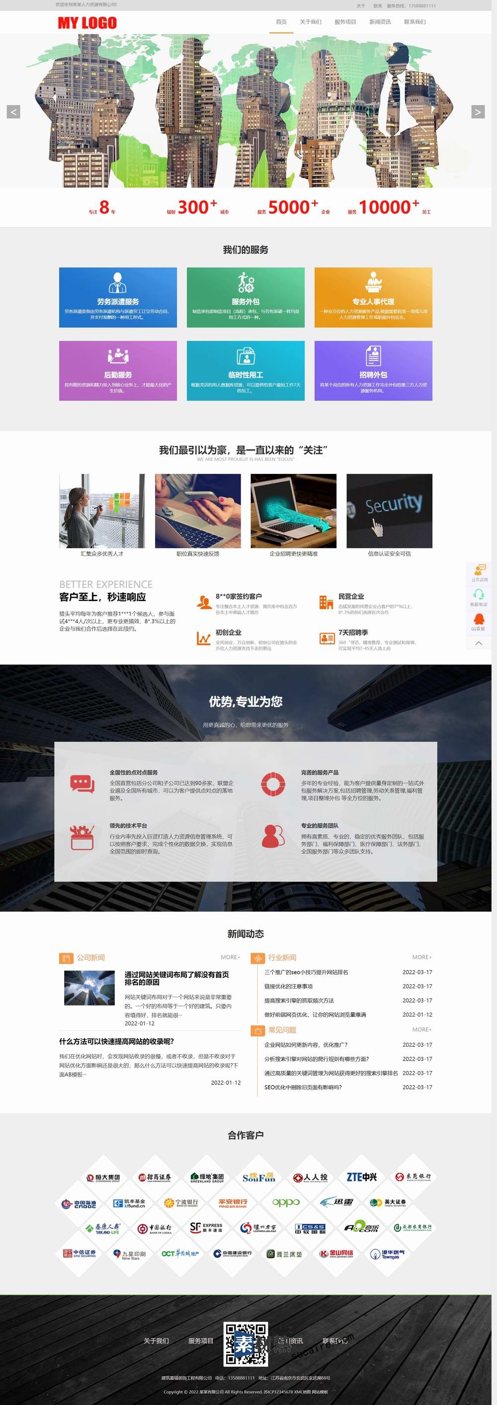 PbootCMS内核开发的网站模板,该模板适用于人力资源网站、咨询服务公司网站等企业,当然其他行业也可以做,只需要把文字图片换成其他行业的即可;