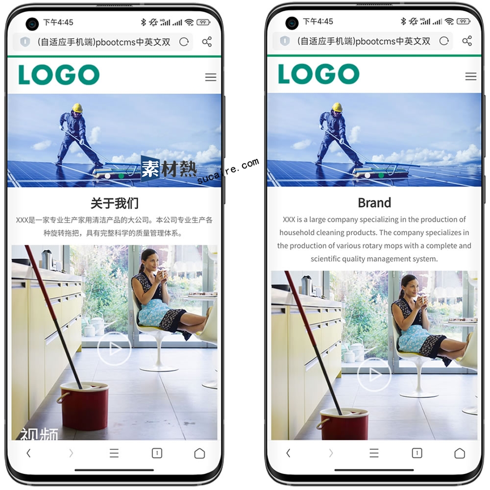 (自适应手机端)pbootcms中英文双语清洁工具企业网站模板 外贸清洁设备网站源码