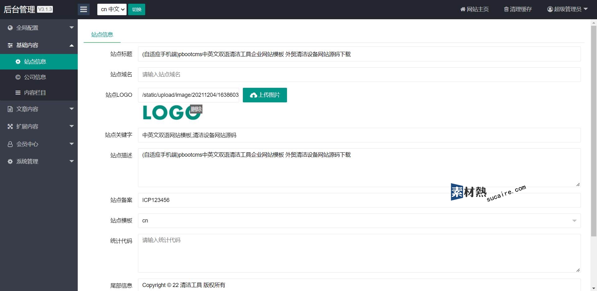 5:后台直接修改联系方式、传真、邮箱、地址等,修改更加方便。