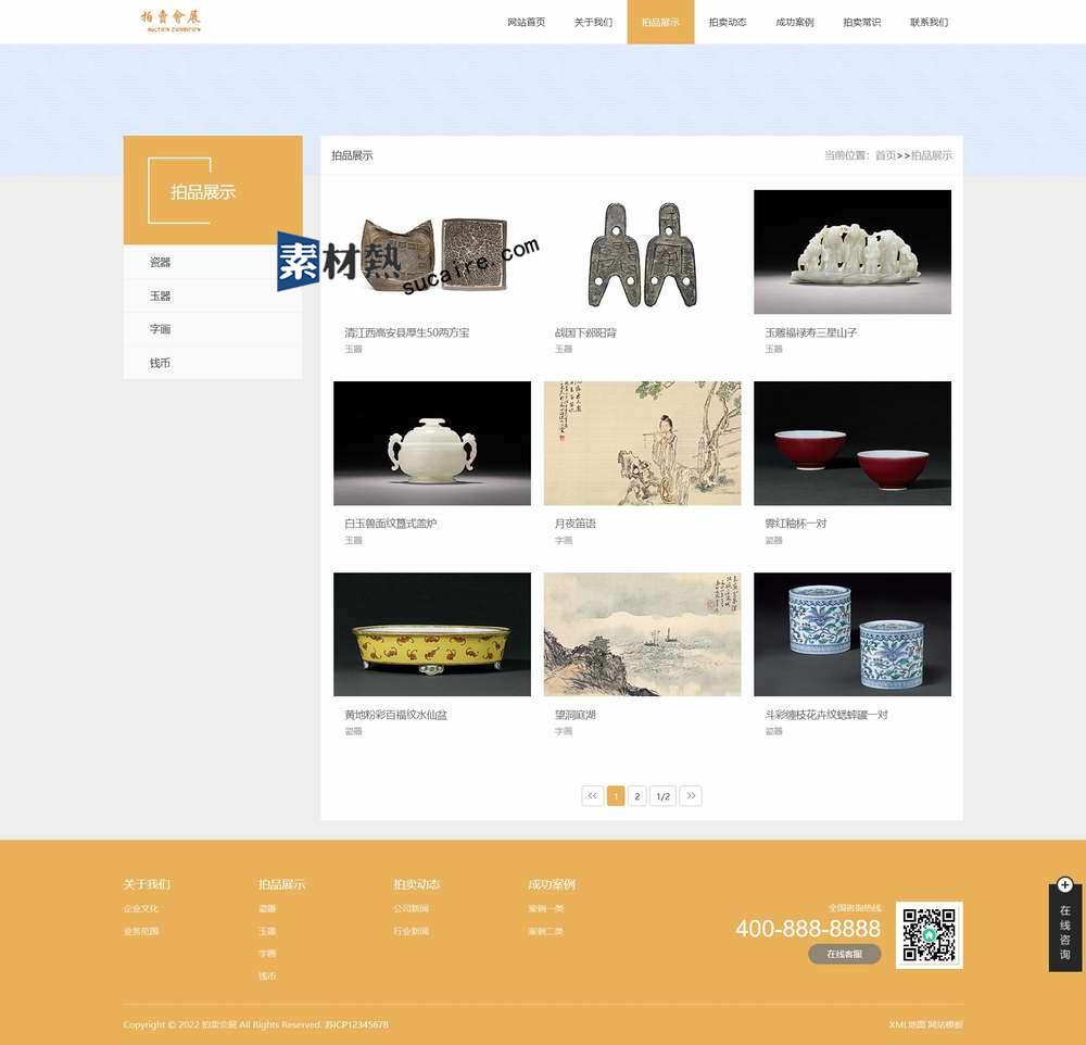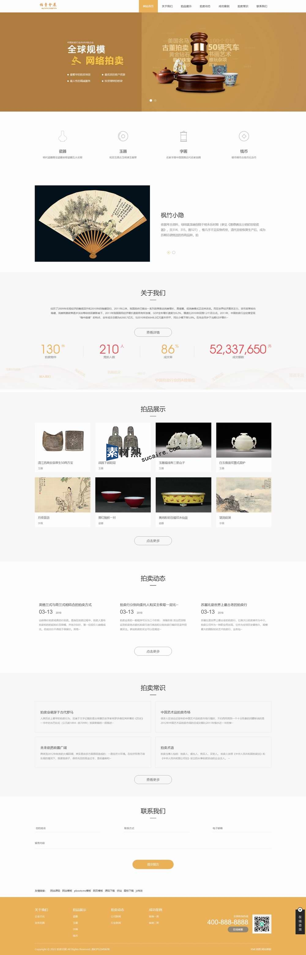 PbootCMS内核开发的网站模板,该模板适用于拍卖展会网站、古董典当网站等企业,当然其他行业也可以做,只需要把文字图片换成其他行业的即可;