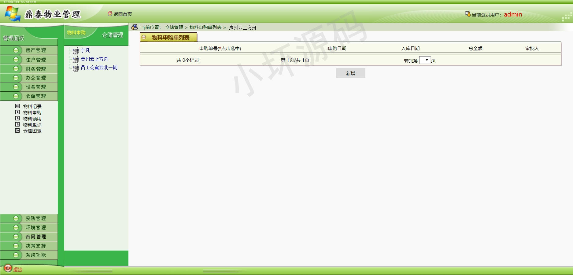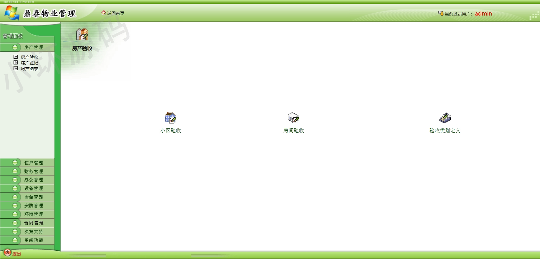 房产管理,住户管理,财务管理,办公管理,设备管理,仓储管理