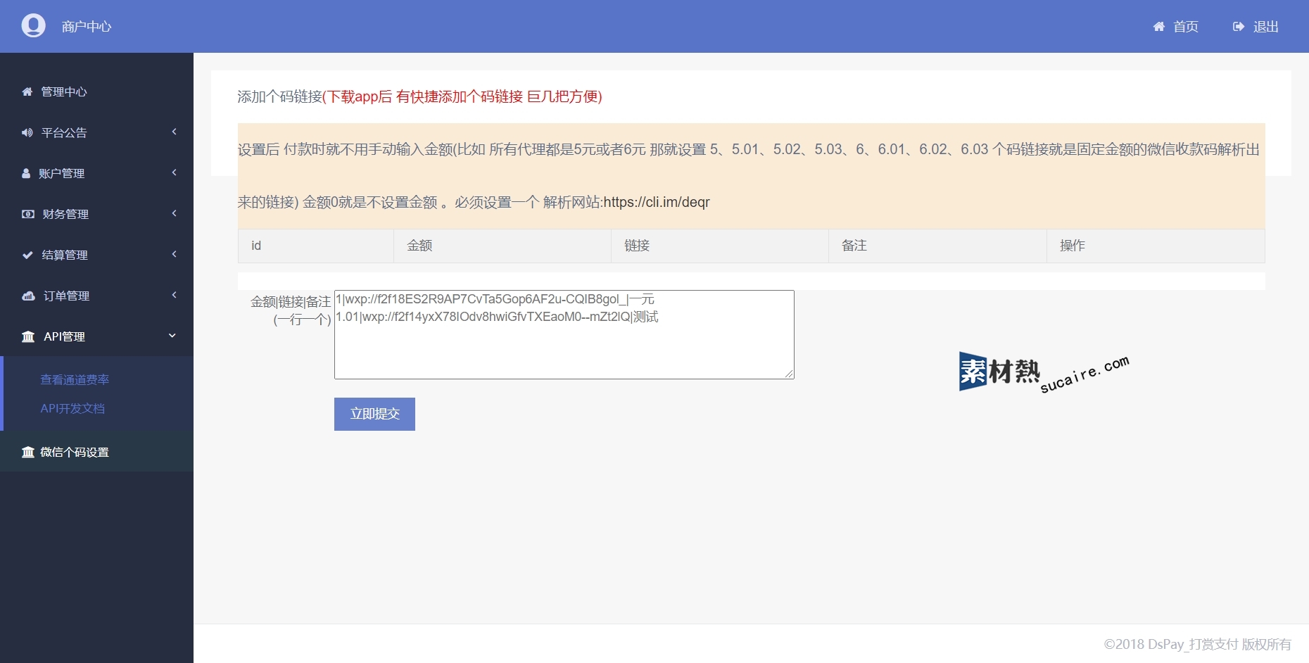 源码说明:Thinkphp个码免签聚合支付系统源码/无需输入金额在线生成/APP监听/聚合支付系统,这套系统本身就是一套聚合四方支付系统,后面二次开发增加了个码收款支付,功能还是可以的,系统全开源。通过app是自动生成收款码的不用输入金额的,另外支持代理,支持代付。有需要的可以下载学习研究!!!