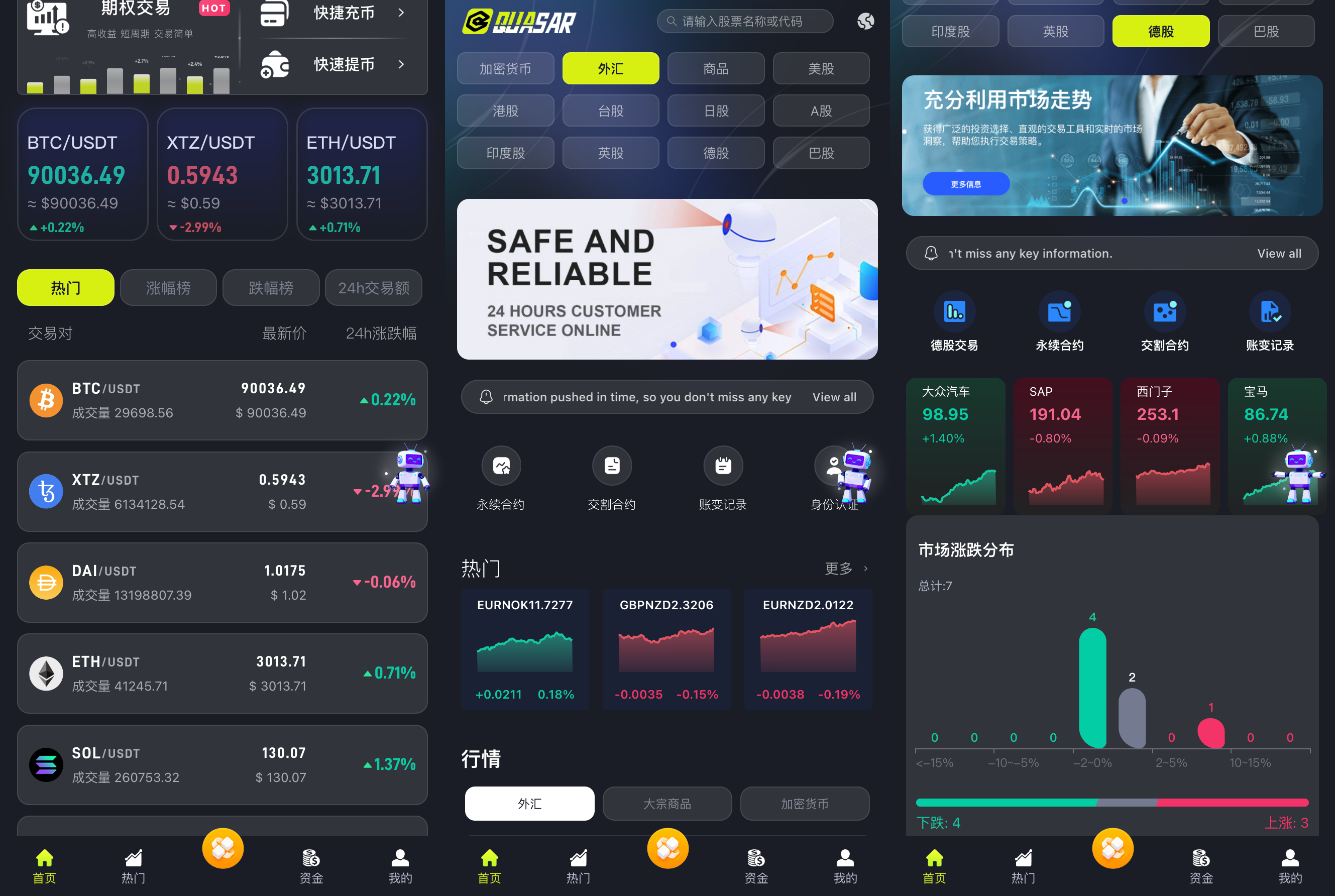 支持多个主要股票市场:美国股市 香港股市 A股市场 台湾股市 日本股市 印度股市 英国股市 德国股市 巴西股市 +外汇+大宗商品+虚拟币交易