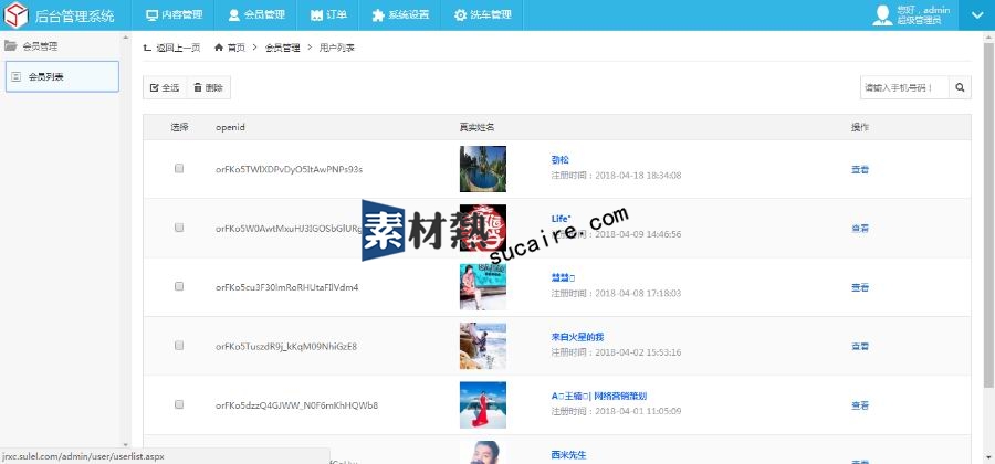 1、 后台会员系统:会员列表、会员基本信息,积分明细、余额明细、购物记录、收货地址(在系统设置的频道管理可以开启此功能)