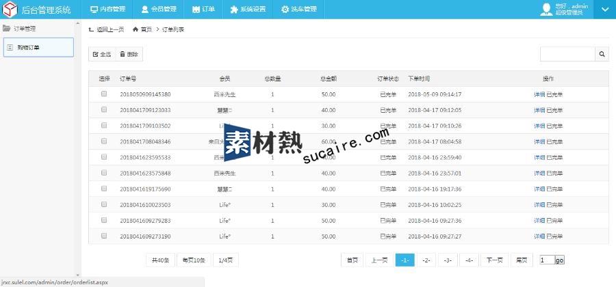 2、 后台订单:订单列表,订单基本信息、订单退款、订单发货 (在系统设置的频道管理可以开启此功能)