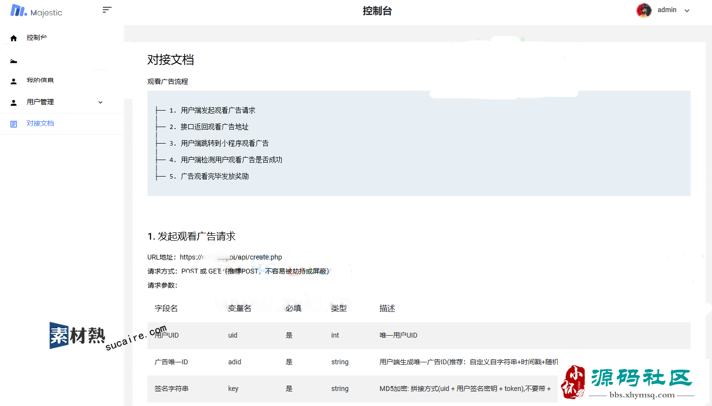 分享软件,吃瓜视频,或其他资源内容,通过用户付费买会员来变现,用户需要付费,有些人喜欢白嫖,所以会流失一部分用户,所以就写了这个系统,用户看广告然后发放奖励,用户不用付费,我们也有收益,两全其美。可以结合付费会员,给用户两种获取资源方式。 这个系统就是提供一个看广告发放奖励的平台。网站,app流量主注册,然后对接,他的用户观看广告,小程序官方给运营者收益,运营者再给注册的流量主分发。