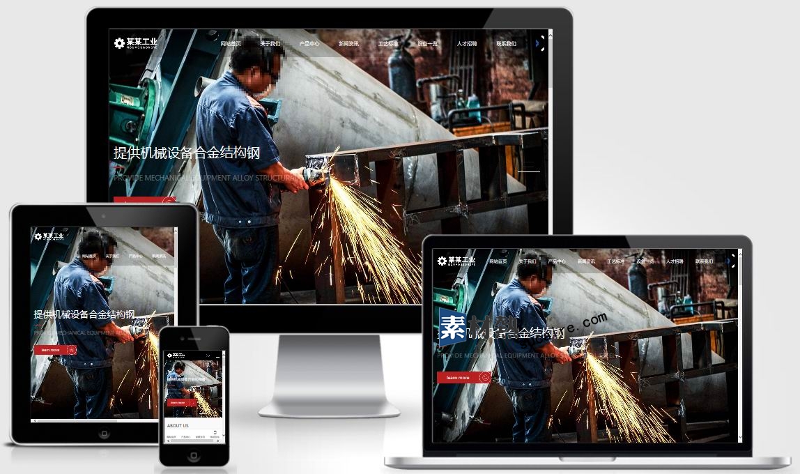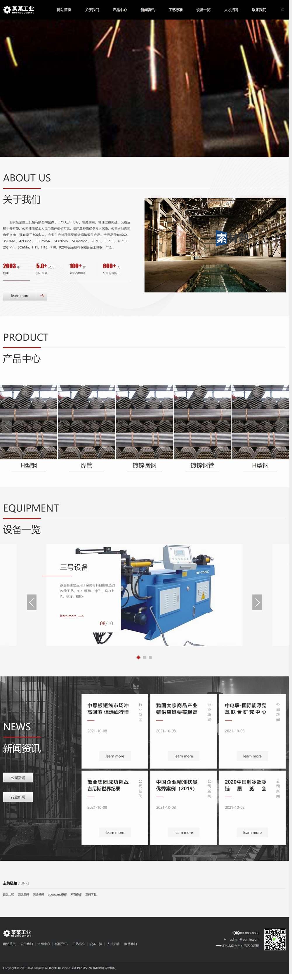 (自适应手机版)响应式重工业钢铁机械类网站pbootcms模板 html5工业设备网站源码