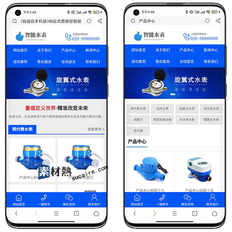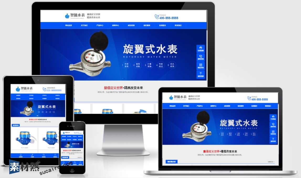(自适应手机版)响应式营销型智能水表类网站pbootcms模板 html5蓝色智能水表网站源码