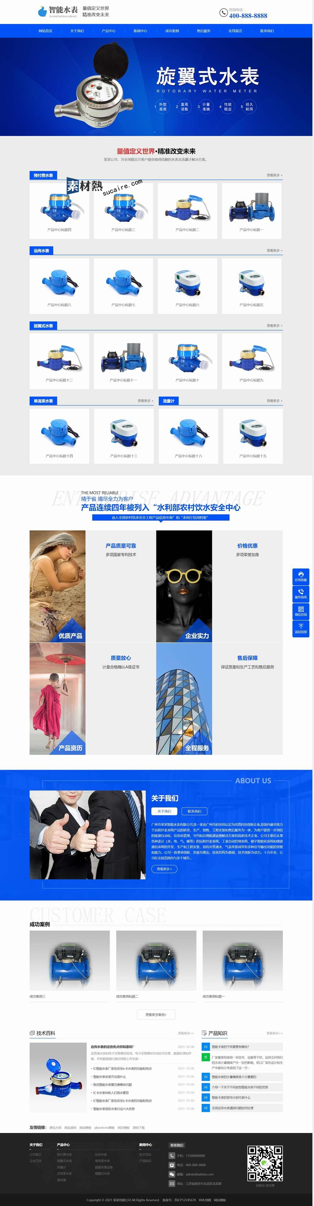 PbootCMS内核开发的网站模板,该模板适用于营销型网站、智能水表等企业,当然其他行业也可以做,只需要把文字图片换成其他行业的即可;