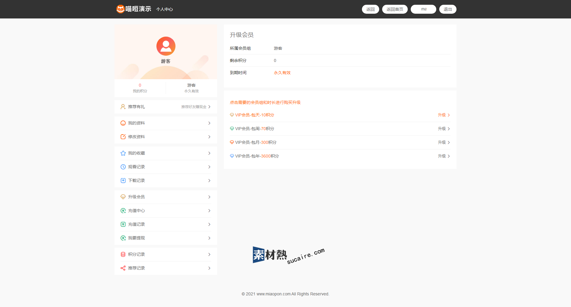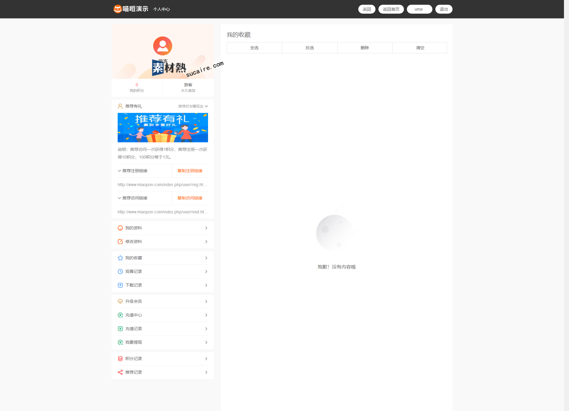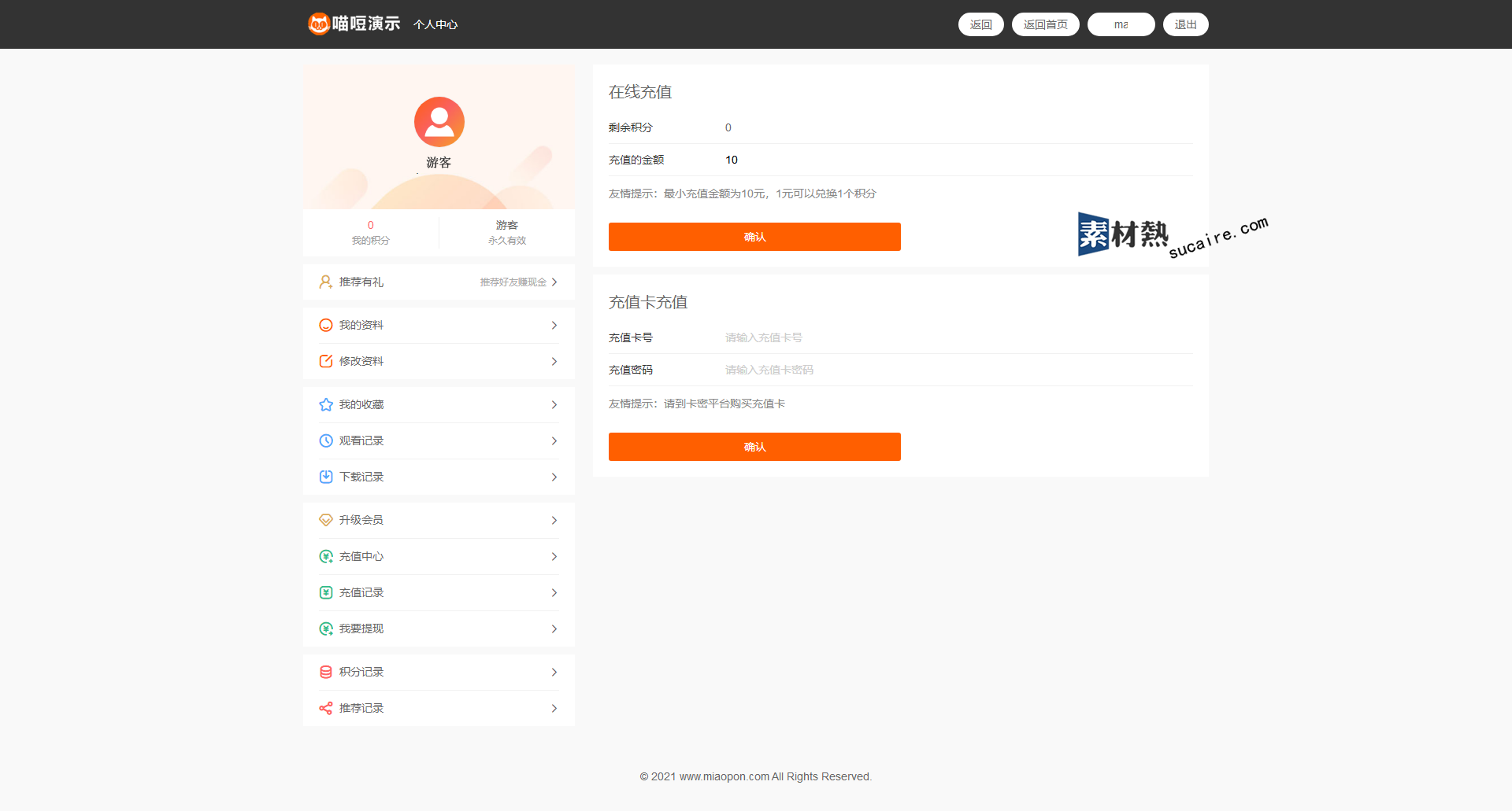 19.积分:可对每部视频进行积分设置及消费制度