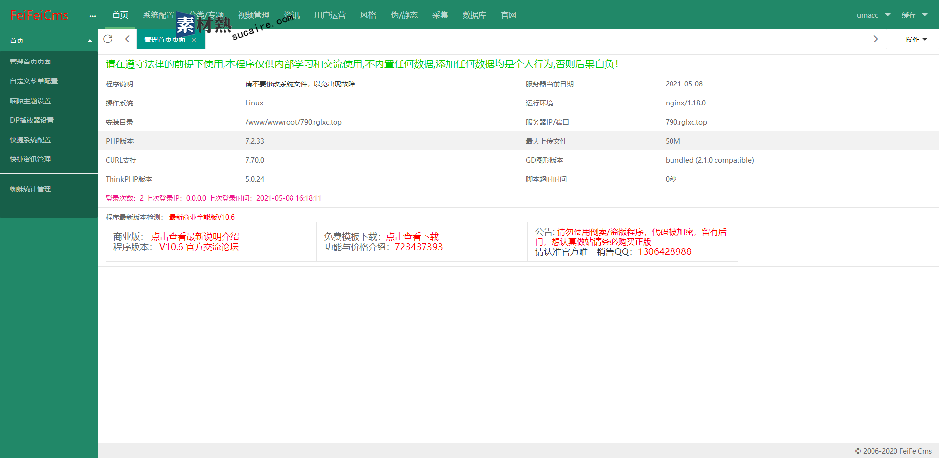 全新飞飞cms商业全能版V10.6,源码开源,无加密,无域名限制,无后门(可以二次开发)