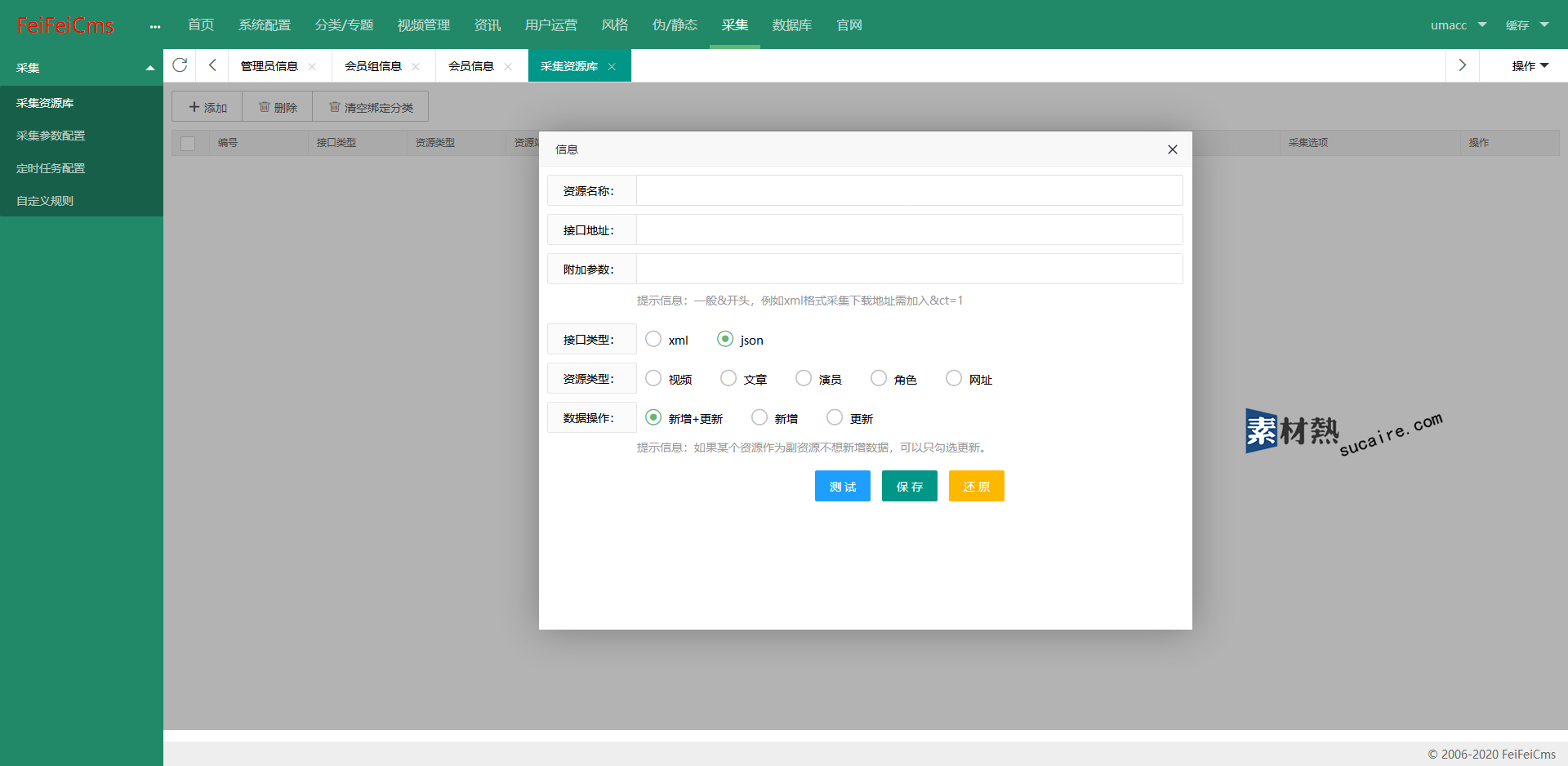 34.采集:可以使用接口进行一键采集/自动采集,或者自己手写采集规则