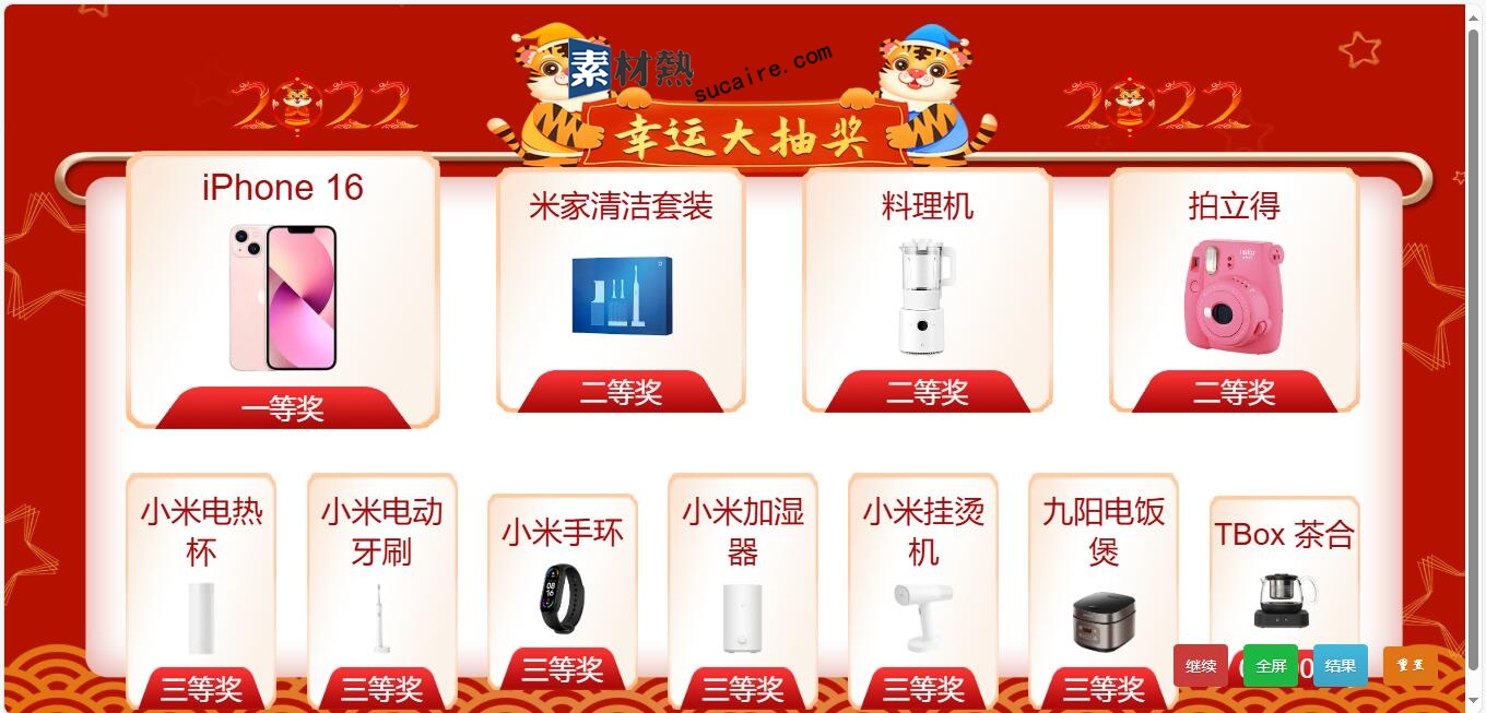 直接上传到PHP服务器即可,图片里面是奖品的图片,index.html可以编辑奖品名称和编号信息,本抽奖是随机的,不可指定